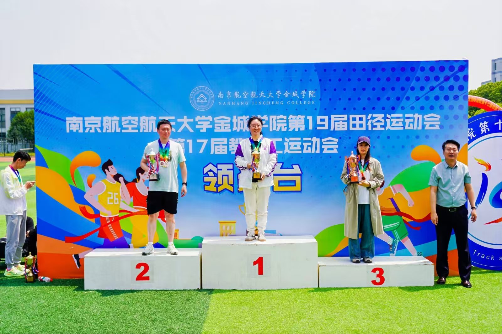呐喊与欢呼交织动感与青春碰撞4月22日-23日南京航空航天大学金城学院隆重举办第十九届田径运动会暨第十七届教职工运动会,信息工程学院的教工们主动响应,以饱满的热情投身其中,用行动展现着师者的活力与担当。