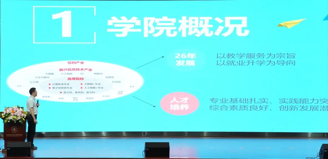 闻凯院长深入结合学院的专业特色与核心优势,全面系统地介绍了学院当前的师资结构、专业布局与发展动向,并重点展示了近年来在学科建设、科研创新及社会服务等方面取得的突出成果。他还聚焦信息工程学院在人才培养方面推出的创新范式与核心目标,从理念内涵到具体实施路径均作了详尽解读,进一步凸显了学院致力于培育高素质创新型人才的教育使命。