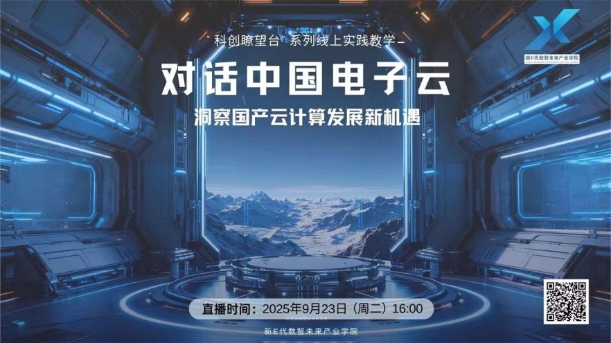 第三期活动《“科创瞭望台”——对话中国电子云》于9月23日下午16:00正式开播,活动通过线上形式进行,旨在为师生提供便捷的渠道,足不出户就能了解最新的行业知识与科技成果 。