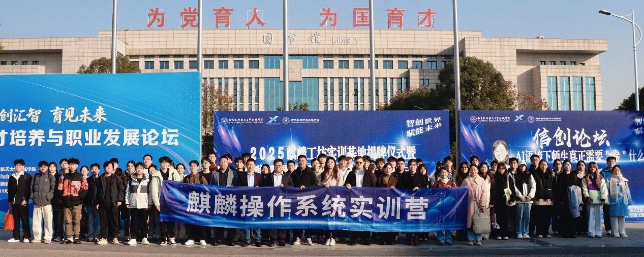 2025年11月20日,南京航空航天大学金城学院信息工程学院隆重举行麒麟工坊实训基地授牌仪式暨麒麟操作系统实训营开营仪式。活动由信息工程学院教师谭裔媺主持,麒麟软件有限公司教育发展中心副总经理杭斯乔、江苏省渠道经理王乃康等企业代,南航金城学院校长陈旭信息工程学院院长闻凯、信息工程学院党总支书记唐亮、信息工程学院副院长谭静、信息工程学院党总支副书记吴倩等领导嘉宾及学生代表们400余人。大家齐聚现场,共启国产操作系统人才培养新篇章。