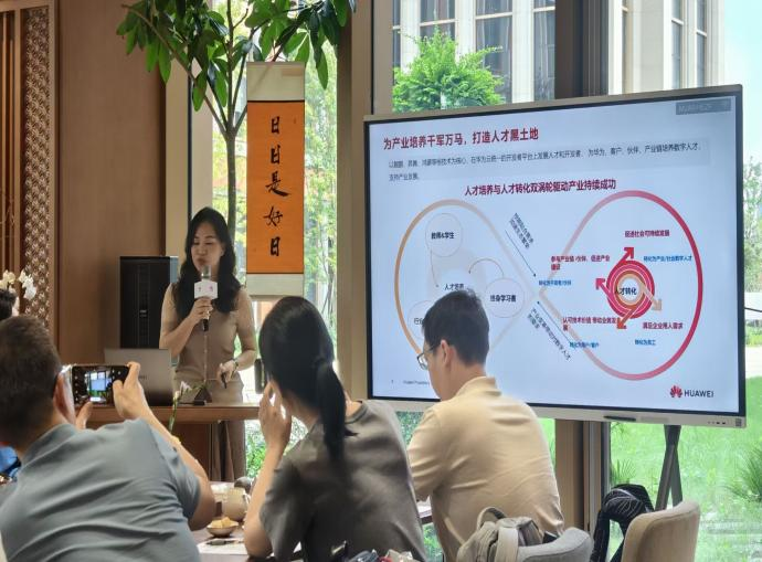 研讨会中,两位老师与华为云技术专家一起热烈研讨了多个主题:“高校是根,生态是林。华为云希望把根扎得足够深,让产业与学术共同枝繁叶茂。” “开发者行业场景案例丰富高校教学”的实践成果,展示了将真实产业工单转化为教学沙箱的“三步法”,“开发内环+云开发环境”双引擎方案,实现“学生编码—云端调试—企业级CICD”一键贯通; “让数据生‘智’”的AI4DB加速框架,为高校AI实训平台提供了低成本、高并发的落地方案;“把认证考纲拆成颗粒度不到2学时的微模块,直接嵌入课程作业,学生一边修学分、一边拿HCIX-AI证书
