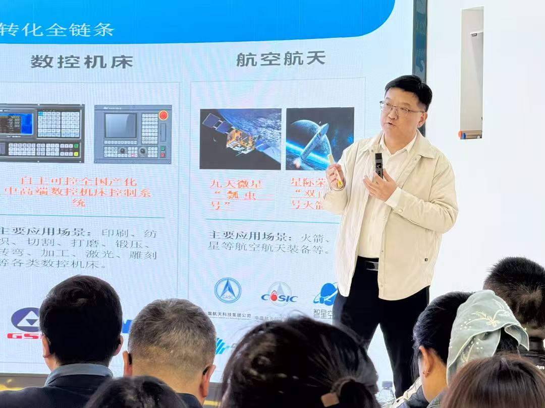 签约聘任环节结束后,南京翼辉科技有限公司总经理丁晓华带来专题讲座。他结合行业发展趋势与企业实践案例,为在场师生分享专业技术、职业发展路径与行业前景,为同学们的专业学习和职业规划提供了务实指导。