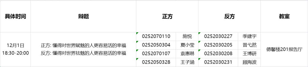 辩论的价值,从来不止于胜负的分晓,而在于观点的交锋与认知的升华。希望借助这场辩论,让同学们深化对 “赋魅” 与 “祛魅” 的辩证思考,更能筑牢对生活本质的认知与精神世界的担当 —— 助力青年将对世界的感知方式与人生幸福的追寻紧密相连。在此,向全体辩手发出诚挚邀约,愿你们以思为剑、以言为锋,呈现一场精彩对决;也欢迎各位同学踊跃观赛,现场将发放 PU 奖励,共赴这场思想盛宴!
