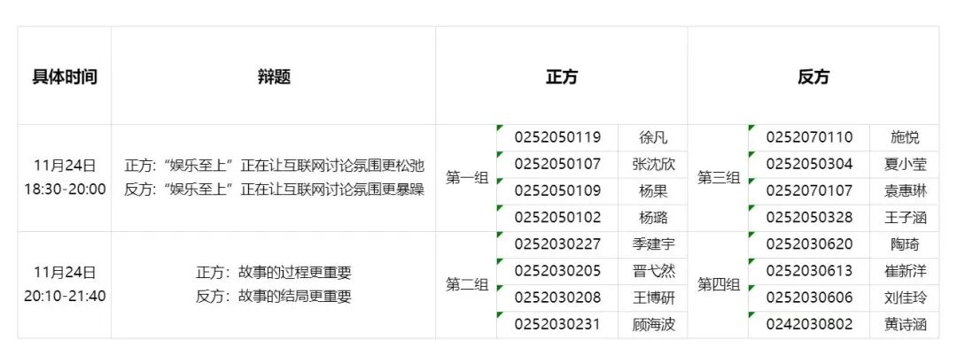 本次辩论赛的意义深远,围绕 “娱乐至上” 对互联网讨论的影响、故事过程与结局的重要性两大议题展开深度思辨。既聚焦当下网络生态的核心矛盾,剖析娱乐化浪潮下的沟通困境;也探讨人生价值的多元取向,引发对生活意义的深层思考。这不仅能帮助大家拓宽认知边界,更能在观点交锋中提升辩证思维与独立思考能力。在此,我们向所有辩手致以最诚挚的邀请,期待他们精彩的表现;同时,欢迎各位同学前来观赛,届时会发放pu奖励。